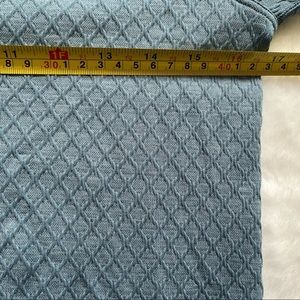 This is a nice, lighter weight long sleeve to throw on and go! The blue color and the monochromatic pattern are stunning!