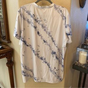 Pre-owned in great condition with no rips or stains. Men’s blue and white tie dye 3/4 zipped short sleeve shirt. Has opening on the armpits for ventilation. Great casual wear or for workouts. Fits like a size Medium to Large. Please check measurements. Comes from smoke and pet free home.