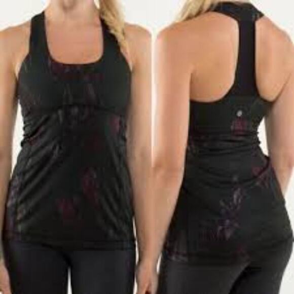LULULEMON 6 Scoop Neck Tank MIDNIGHT IRIS Black Floral Top Racerback Size 6