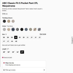 LULULEMON ABC Classic-Fit 5 Pocket Pant 31 x 37L Warpstreme | Deep Navy
