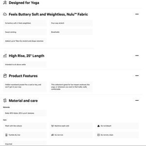 Think of these as Lululemon’s petite version. These are intended to sit at the ankle but can serve as a crop for leggier gals. These lightweight tights minimize distractions and maximize comfort as you flow through your practice. Designed for yoga, buttery-soft and sweat-wicking.