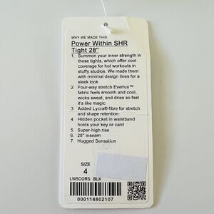 LULULEMON ATHLETICA Black Power Within SHR Pant 28" Leggings - US 4