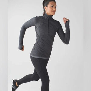 LULULEMON ATHLETICA Kanto Catch Me 1/2 Zip in Heathered Herringbone Black