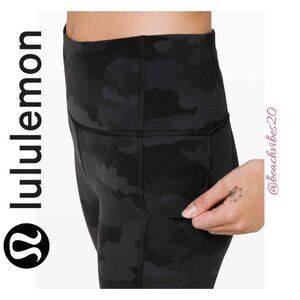 Excellent used condition LULULEMON ATHLETICA Pace Rival High-Rise Crop 22" in size 8 color Heritage 365 Camo Deep Coal Multi / Black.