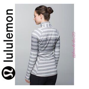 Excellent used condition LULULEMON ATHLETICA Race Your Pace 1/2 Zip size 10 in the color Marshmallow Stripe Heathered Slate. FROM THE LULULEMON "LIKE NEW" SECTION BUT PLEASE NOTE THAT THIS IS A GENTLY USED ITEM AND MAY SHOW SOME SLIGHT SIGNS OF WEAR FROM WASHING OR WEARING.