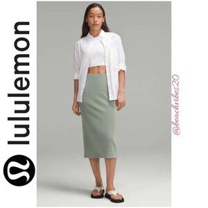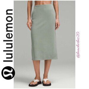 Brand new with tags LULULEMON ATHLETICA Softstreme High-Rise Midi Skirt in color Grey Eucalyptus size 8.