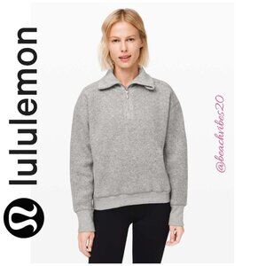 Excellent used condition LULULEMON ATHLETICA Stand Out Sherpa 1/2 Zip in size 8 color Heathered Silver Spoon / Heathered Core Light Grey. PLEASE NOTE: THE SHERPA IS NOT A SUPER SOFT SHERPA, ITS A LITTLE ROUGH FEELING*