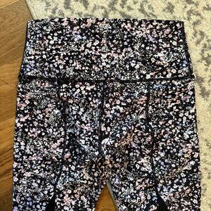 LULULEMON ATHLETICA Wunder Under Crop II Roll Down Scallop 10 | 24" black floral