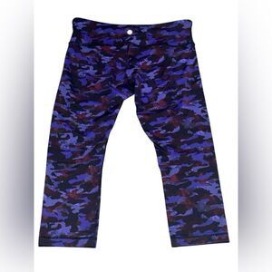 LULULEMON ATHLETICA blue black Wunder Under Crop III Camo Emperor leggings sz 8