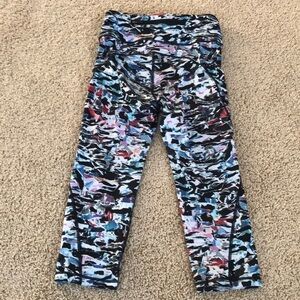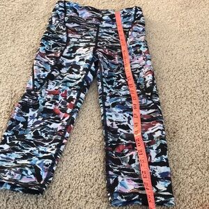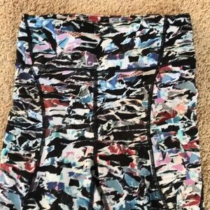 Lululemon Athletica size 4 black with blue multi sports tights. Excellent condition.