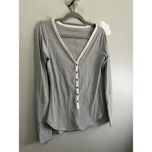 LULULEMON Awesoma Henley Long Sleeve in Heathered Slate Ghost Stripe Women's 6