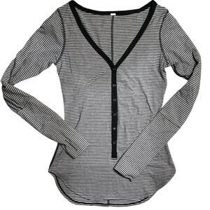 LULULEMON Awesoma Henley in Hyper Stripe Black Heathered Slate Sz. 4