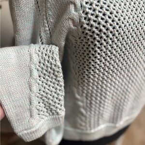 Lightweight, cropped, woven knit crochet style, oversized loose fit for cooling down after a workout, breathable, wear on- off shoulder , layer over a dress, tank or bra. The tag has been cut out but the measurements are a generous 22” ptp, 20” length. Perfect for everyday wear , casual or athletic. Excellent condition
