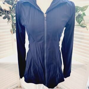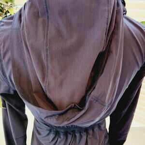 LULULEMON BLUE HOODED GATHERED WAIST ZIP POCKET JACKET SIZE 4