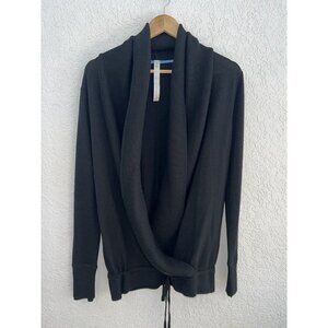 Lululemon Black Knit 100% Merino Wool Sweater MINT Tie Cinch Waist (C1).