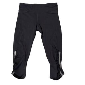 LULULEMON Black Reflective Cropped Running Leggings Tights 4