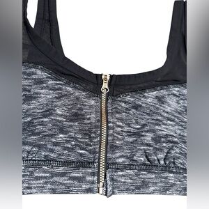 LULULEMON Black and Gray Sports Bra with rose gold zipper and mesh details 10