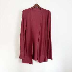 Burgundy ("Heathered Mulled Wine") 'Cashlu sweater wrap by Lululemon.