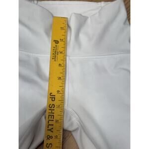 The LULULEMON Clear The Court Vented White Leggings in women's size 0 are a stylish and versatile activewear option. These solid white leggings feature a pull-on closure and a 25-inch inseam, making them a comfortable and secure fit for various activities such as CrossFit, basketball, and bodybuilding. The mid-rise and athletic fit is perfect for active women looking for leggings that offer both style and support during their workouts. Made by the popular brand Lululemon, these leggings are machine washable and have an elastic waist for added comfort.