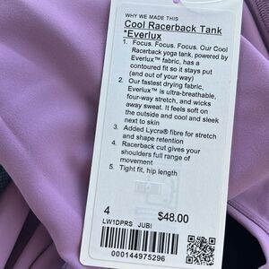 LULULEMON Cool Racerback tank Everlux jubilee Purple Lilac NWT SIZE 4