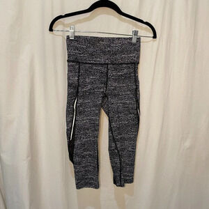 LULULEMON Cropped Mesh Detail Heathered Grey Running Tights - size 4