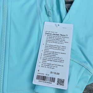 LULULEMON DEFINE JACKET NULU IDEAL MINT SIZE 4 NWT