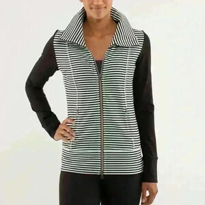 LULULEMON Daily Yoga Jacket Classic Stripe Mint Moment Black / Black Sz. 6