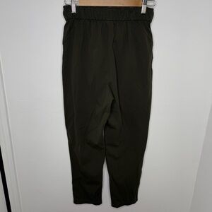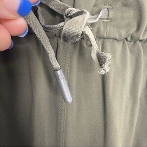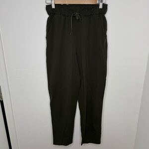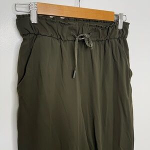 Lululemon Dark Olive Keep Moving 7/8 Pants. Good Condition. Only Flaw is that the one side of the drawstring is missing. No other flaws. Size 4