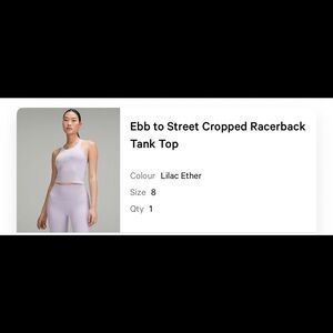LULULEMON Ebb to Street Cropped Racerback Tank Top