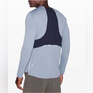LULULEMON Fast & Free LS Shirt Heathered Chambray / True Navy Breathable Sweat Wicking Anti-Stink