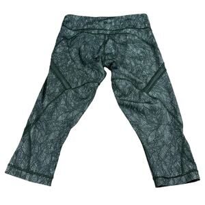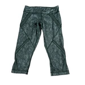 LULULEMON Green White Palm Tree Mesh Inset Cropped Leggings Women's Size 6