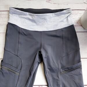 LULULEMON Grey Pocket Crop Run Leggings Contrast Waistband 4
