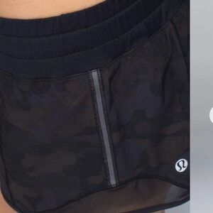 LULULEMON Hotty Hot Short Savasana Camo Black Drawstring Pocket 4 Mesh Elastic