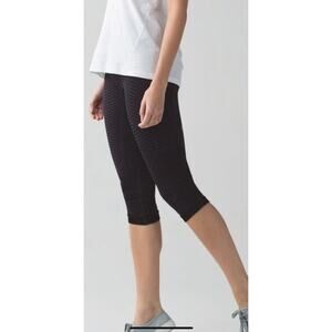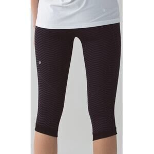 LULULEMON In The Flow Crop II Heathered Naval dark Blue black knee length crop 4 seamless