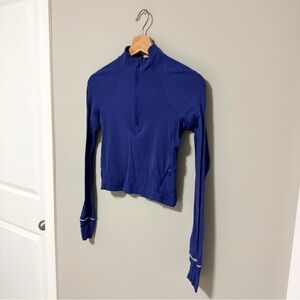 Elevate your activewear with this stylish blue quarter-zip top. Perfect for workouts or casual outings, it offers comfort and a sleek look.