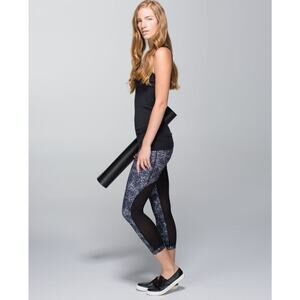 LULULEMON Journey Crop Athletic Leggings Sheer Mesh Rocky Road Sand Dune Sz 4