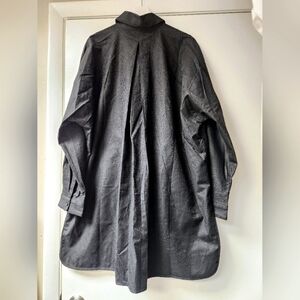 1. Bold, textured fabric gives this classic shirt structure and a future-forward feel. The longer length is easy to wear and layer