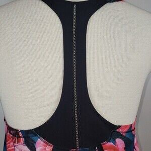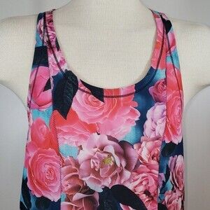 Pre-owned Lululemon Lightened Up Singlet racerback tank size 6. Secret Garden Floral print with black detail on back. Hi-low hem with pleating detail on back. Sweat wicking swift ultra light fabric. Loose fit that doesn't ride up.