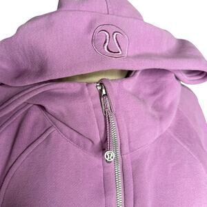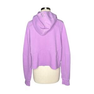 Pretty purple half zip Scuba sweatshirt hoodie from Lululemon in women's size XL/XXL. There's some discoloration on the front zip and bottom near hem as shown, otherwise great used condition.