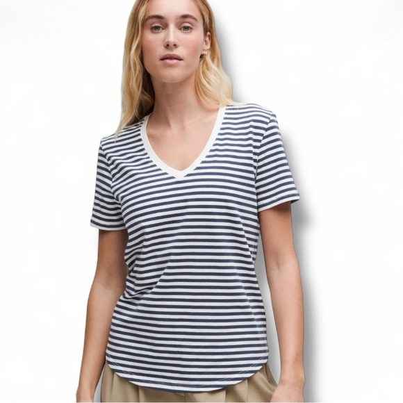 LULULEMON Love V-Neck - 14 Narrow Bold Stripe Club Blue/White