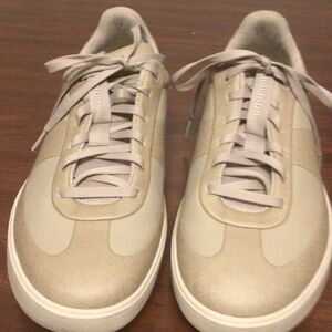 Beige leather upper with man made sole