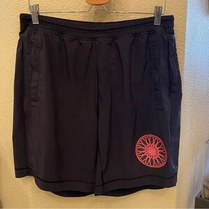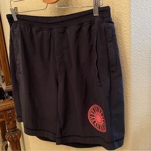 LULULEMON Men Black Soulcycle Graphic Logo Athletic Lined Shorts Size XL
