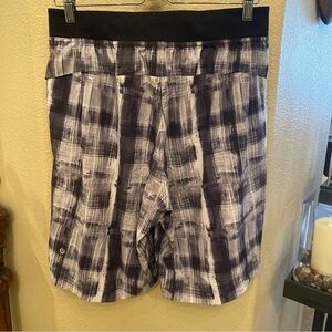 Pre-owned in great condition with no rips or stains. Men’s black and white patterned unlined athletic shorts. Comes from smoke and pet free home.