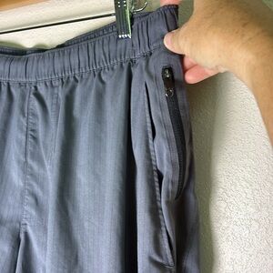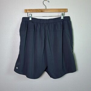 LULULEMON Men XL Dark Grey Pinstripe Athletic Swim Shorts Surf Summer Beach