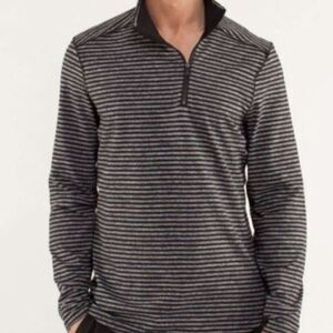 LULULEMON Men's Studio Half Zip Pullover Black White Striped Size Medium