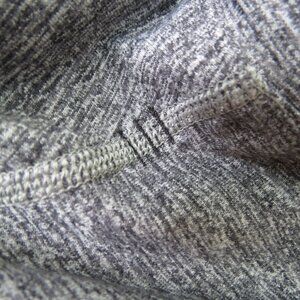• dark gray space-dyed henley top; long sleeves; snap & button neckline; reflective strips on back of arms and right hip; thumbholes