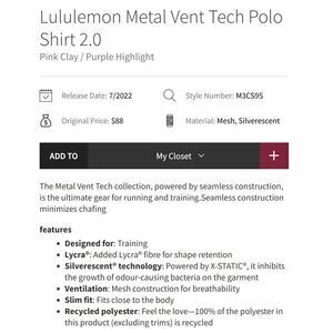 LULULEMON Metal Vent Tech Polo Seamless Lightweight Pink Clay Mens Sz XL