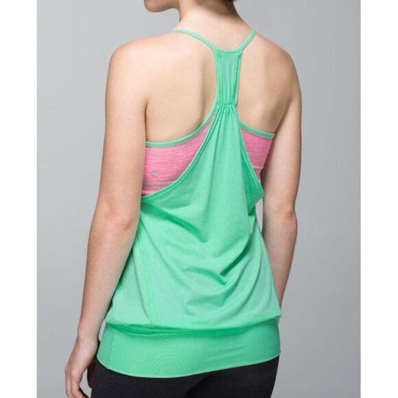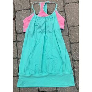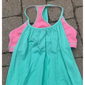 LULULEMON NO LIMITS green neon pink SPORT BRA layered TANK TOP sz 8