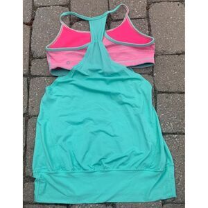 LULULEMON NO LIMITS green neon pink SPORT BRA layered TANK TOP sz 8