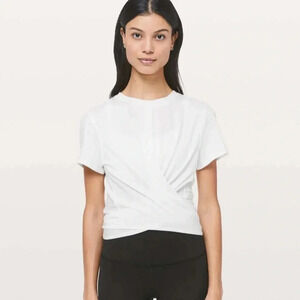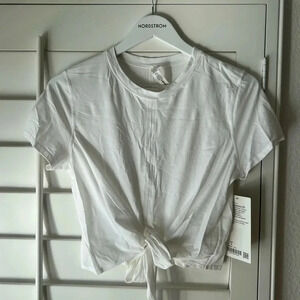 LULULEMON NWT Time to Restore Short Sleeve Cropped Crop Top White Wrap Tie 6